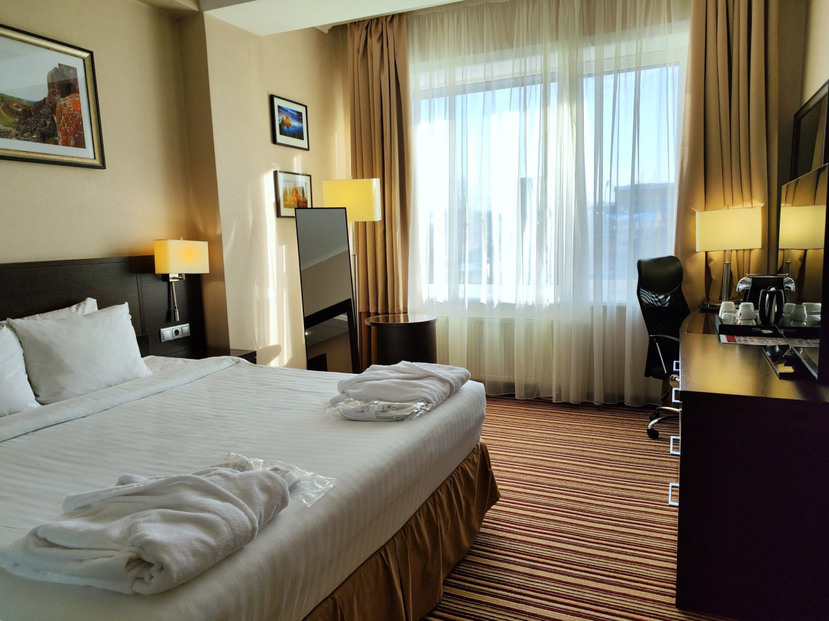 房间位于安静的一侧。 特大床,让您享受安宁的睡眠和放松。