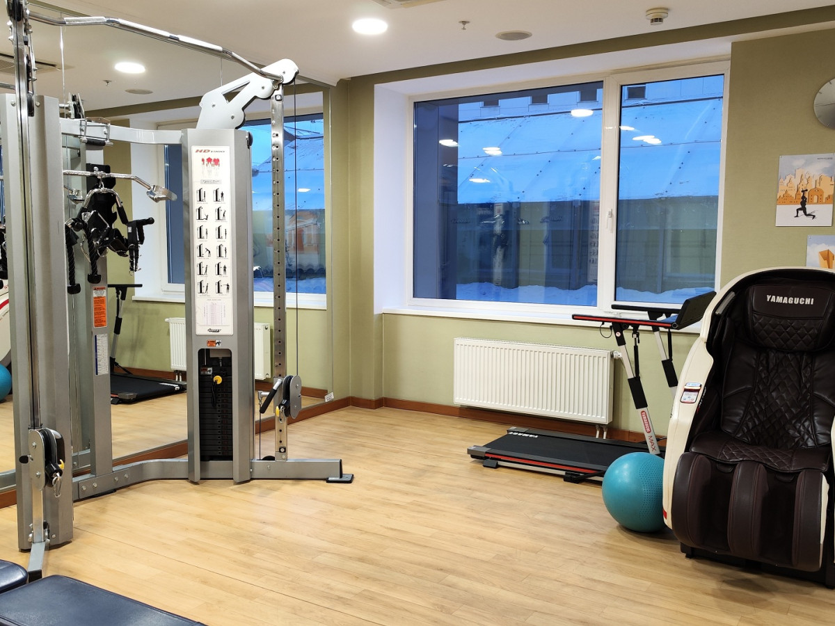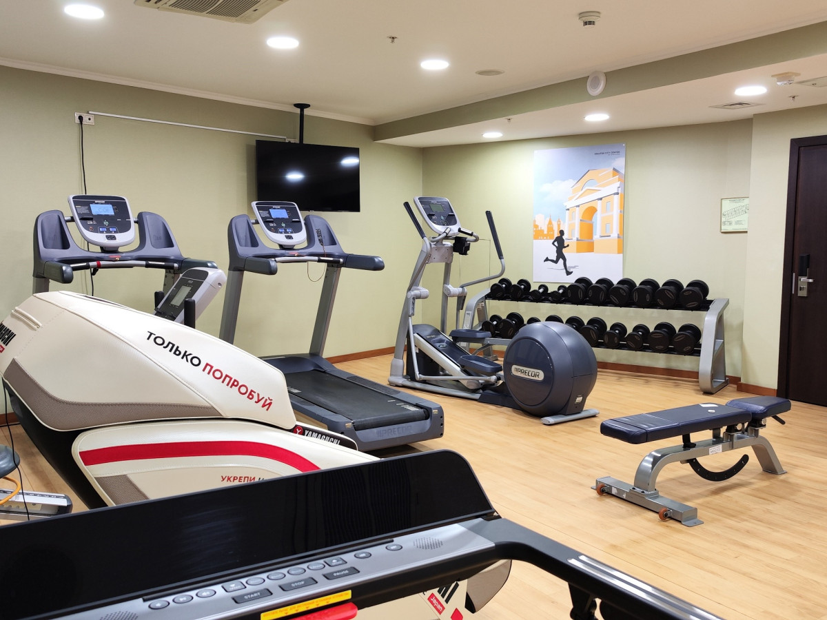 酒店二楼设有一间健身室,所有入住酒店的客人均可24小时免费使用。